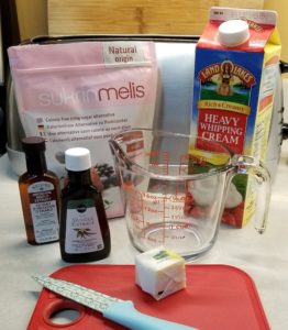 This is a simple 5 ingredient recipe and it uses the Keto friendly sweetener that I affectionately call “Pink Sukrin,” but it’s actually called Sukrin Melis (Icing Sugar) Here is the link.