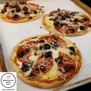 Note: 1 tbsp of pizza sauce is plenty to get the nice flavor and still have the bread be toasted enough to put up and eat. Remember too, that the more sauce you add, the more carbs you are adding to your pizza.